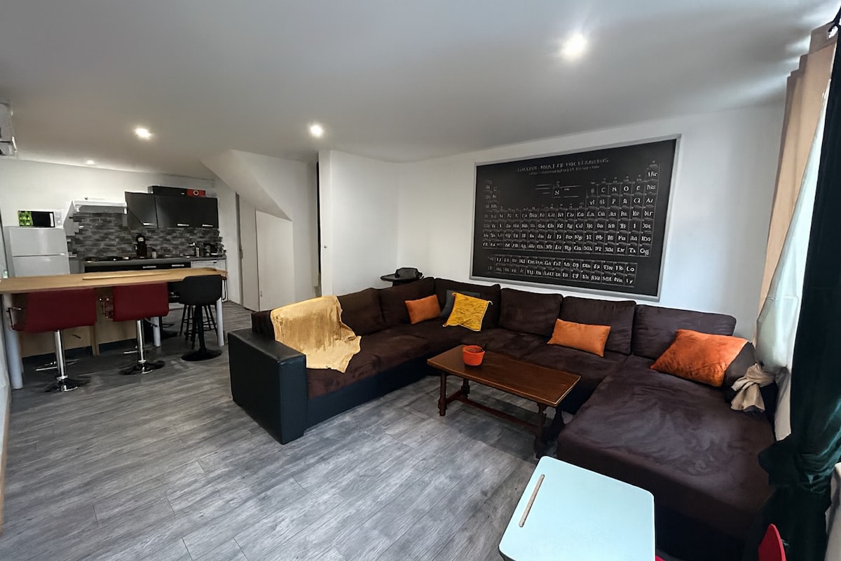 36m² apartment completely refurbished located on the ground floor of a small building A stone's throw from the city centre Large 140x80 shower TV in the living room as well as in the bedroom Many restaurants and fast food nearby Easy and free street parking 2 free parking also a few meters from the accommodation I provide all the linens needed for your stay! We look forward to welcoming you!