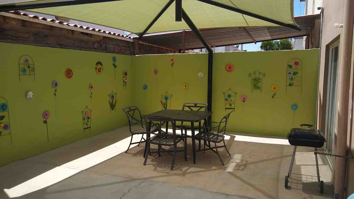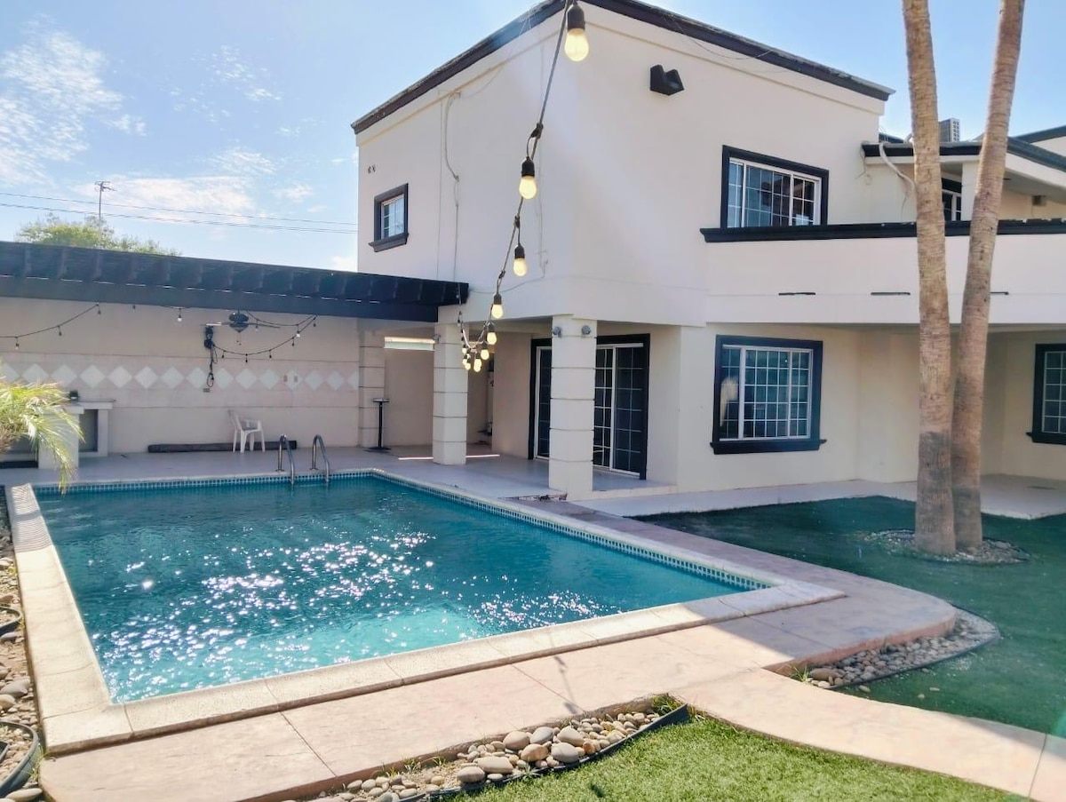 Relájate en esta escapada única y tranquila. Casa moderna y acogedora ideal para familias grandes o grupos. Cuenta con patio privado, cocina equipada y estacionamiento para hasta 2 autos. Ubicada en zona segura y tranquila, cerca de la frontera, hospitales y centros comerciales. Perfecta para estancias largas o cortas. ¡Te sentirás como en casa!
