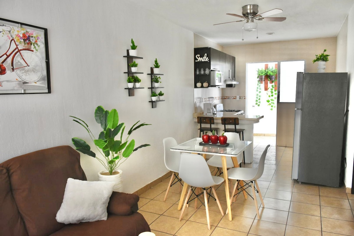 Cold AC Apartment with lots of natural lighting, all rooms have sliding doors and fans , located in a private and safe lot in downtown Ixtlan , walking 2 blocks from main plaza The whole group will enjoy easy access to everything downtown, private parking, washer included