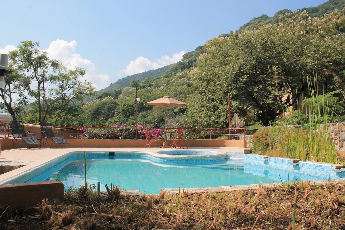 Te encantará disfrutar el bello clima de la zona y refrescarte en el agua de la alberca! Al amanecer te despertarás con el canto de los pájaros! Ven a disfrutar de unos momentos inolvidables!! Ya Contamos con MESA DE BILLAR !! Ven a disfrutar de unas maravillosas vacaciones!! La calefacción de la alberca tiene un costo adicional