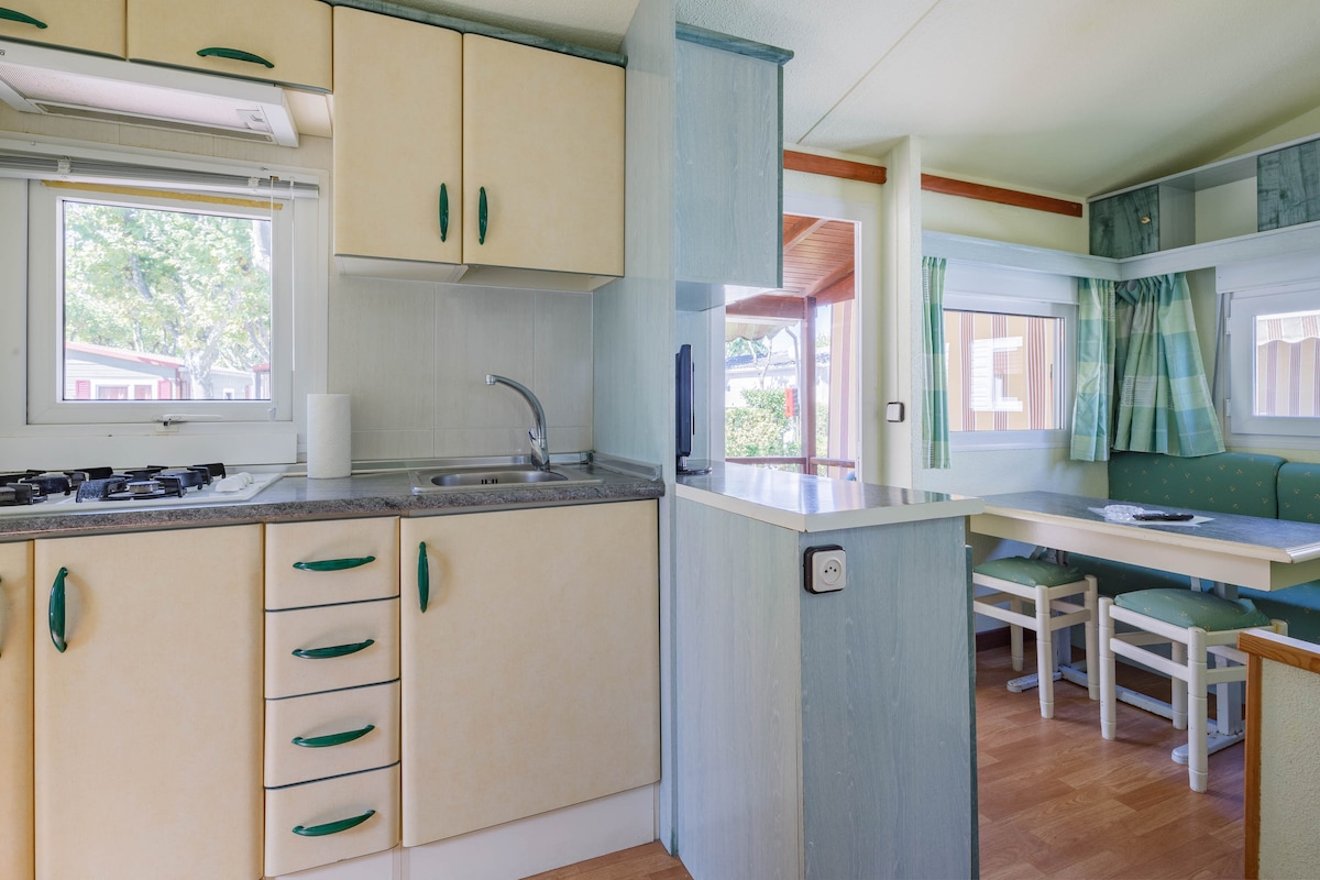 The accommodation is made up of 4 modules, with a total of 9 units (6 T0 and 3 T1). The Twin Lodge is a T0, ideal for 1 or 2 people, offering two single beds and a full bathroom. It also features a balcony with a lovely view of the garden, perfect for reading. Guests can access a shared social area with a multiuse room with a table, a bathroom, and an outdoor deck with a pool view. Pets (dog) allowed exceptionally, with request and extra fee.