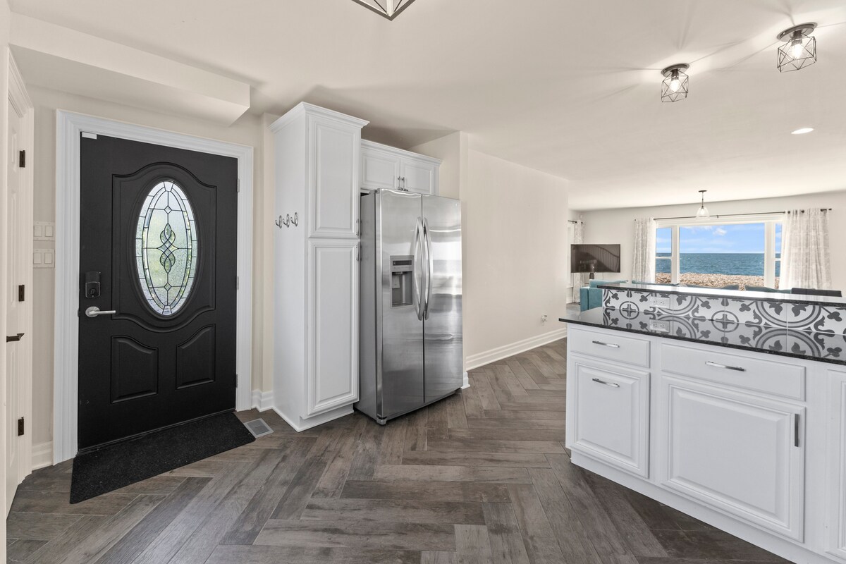 Moe’s place on the lake is the perfect sized space just far enough to feel the peace of nature’s escape, yet close enough to all of life’s conveniences. All seasons highlight a different slice of nature’s beauty. Summer brings picturesque sunsets, swimming, and listening to the glistening waves of Lake St.Clair. “Fall” in love with a crackling fire on the deck, sip some wine and let go. Explore a winter wonderland and warm up with a soak in the hot tub feeling the drops of sparkling snowfall.