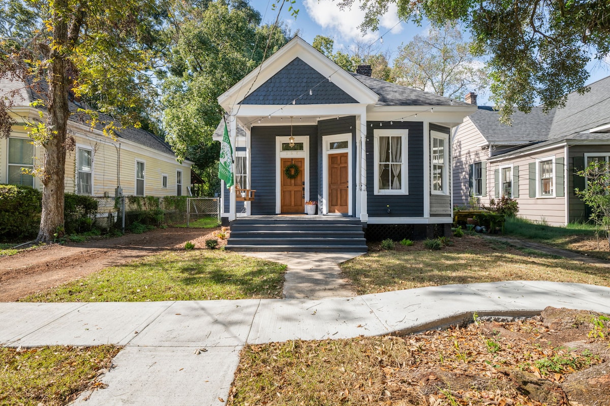 Perfect for business & pleasure. Extremely easy access (less than 2 miles) to downtown shopping, restaurants, cruise terminal, Mardi Gras attractions, battleship & Interstate I-10 . Private stay at this cozy 1930's cottage with modern bedroom suites & therapeutic foam mattresses! Kitchen features a new gas stove with griddle. In the heart of Midtown-Leinkauf Historic District. Walking to Starbucks or groceries. $30 pet fee. Kid friendly. HUGE backyard. Easy 20min. to University South Alabama.