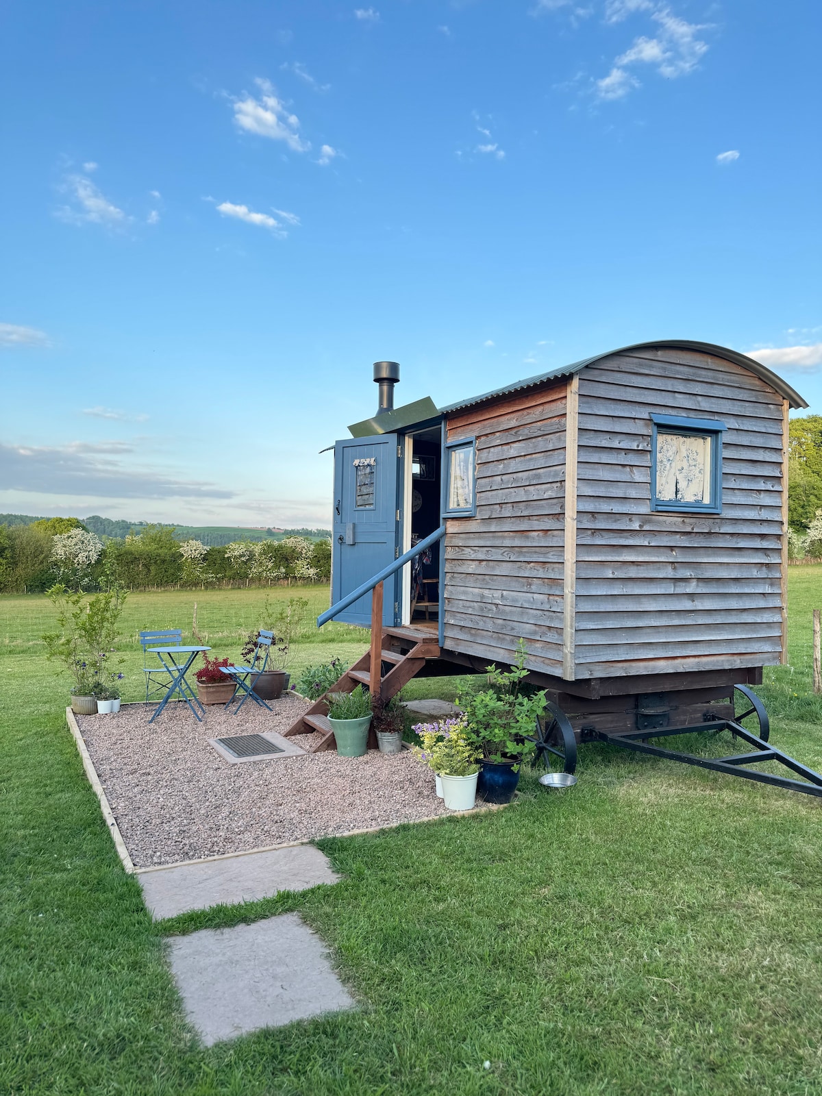Hideaway Haven is a totally unique 100% OFF GRID little bit wild, back to basics with a twist shepherds hut that sits nestled in its own private, secluded ancient flower meadow. This is a hidden gem waiting to be discovered by you!! All lovingly hand crafted, this bespoke hideaway is simply enchanting, your every comfort has been carefully considered and you hardly realise you are completely off grid. This is the perfect spot to 'wild glamp'. unwind, recharge and reconnect.