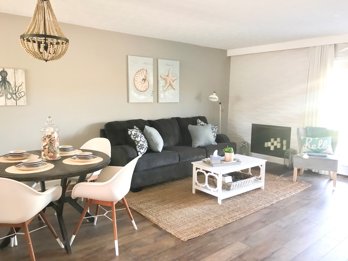 A modern coastal style and freshly renovated condo located in beautiful Bloomington Indiana less than one mile from Lake Monroe. The ground floor cozy condo sits on the 18th hole of our gated community. Amenities include a king size bed, queen size bed and Ashley queen sleeper sofa, fast unlimited WiFi internet and a 50" 4K LED TV with Hulu Live. Perfect for football and basketball games, parents weekends and visits to gorgeous Lake Monroe.