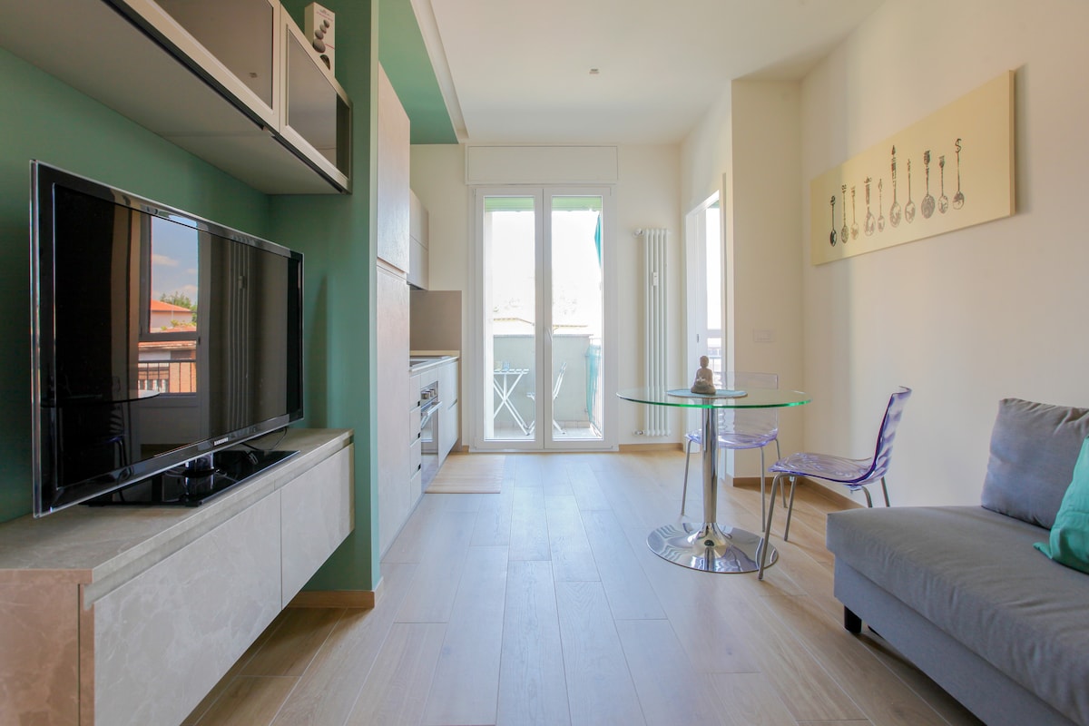 If you are tired of the usual apartment, the “Mami Garden Suite 4” offers its guests the opportunity to stay in Milan in a modern suite with a beautiful terrace & garden for exclusive use. Garden Suite 4 opens onto a large living room with a foldaway bed, equipped kitchen, bathroom and terrace for exclusive use between palm trees and olive trees. Stays are always followed by one of our dedicated tutors who will assist you during your stay. #Stay here Milan for your Travel Experience.