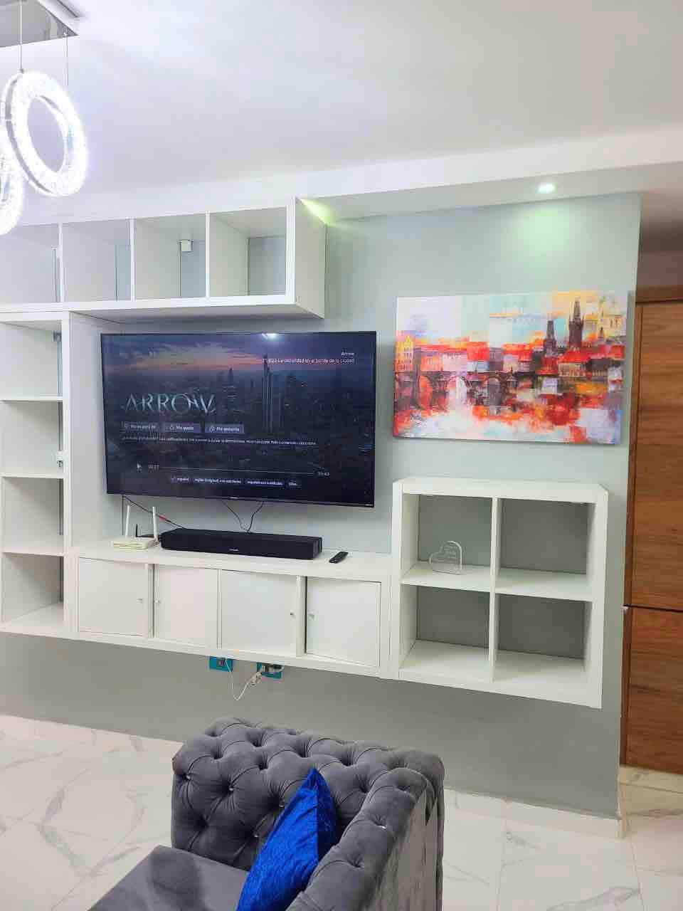 Experience a modern and centrally-located space, just two blocks from the Tetelo Vargas Stadium and local supermarkets, and 15 minutes from the beautiful beaches of Juan Dolio. The apartment offers air conditioning in both the living room and the bedroom, which has a comfortable king size bed, while the living room has a full sofa bed. In addition, you will enjoy Wi-Fi, a fully equipped kitchen and a laundry area, designed to make your stay comfortable and unforgettable.