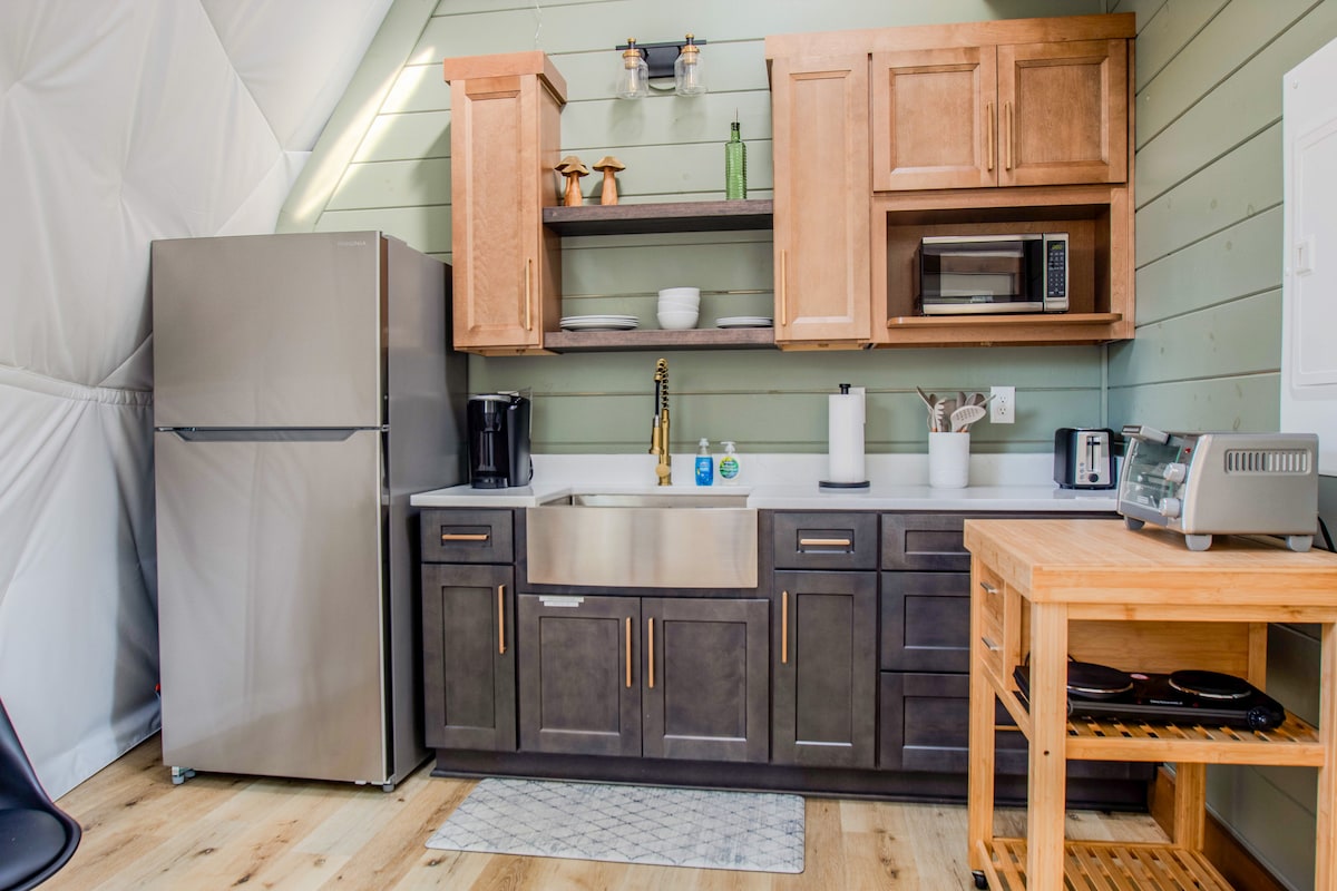 Welcome to our modern sanctuary nestled in the serene woods of Smithville, just a stones throw away from the tranquil waters of Center Hill Lake. Solace Sphere offers a contemporary twist on the classic dome design, featuring a one bedroom layout with a loft, complemented by a rejuvenating waterfall shower and top-of-the-line appliances for your comfort and convenience. We are located 1-1/2 hours from Nashville and 3 miles from Pate’s Ford Marina Bar and Grill. We hope you find your Solace.