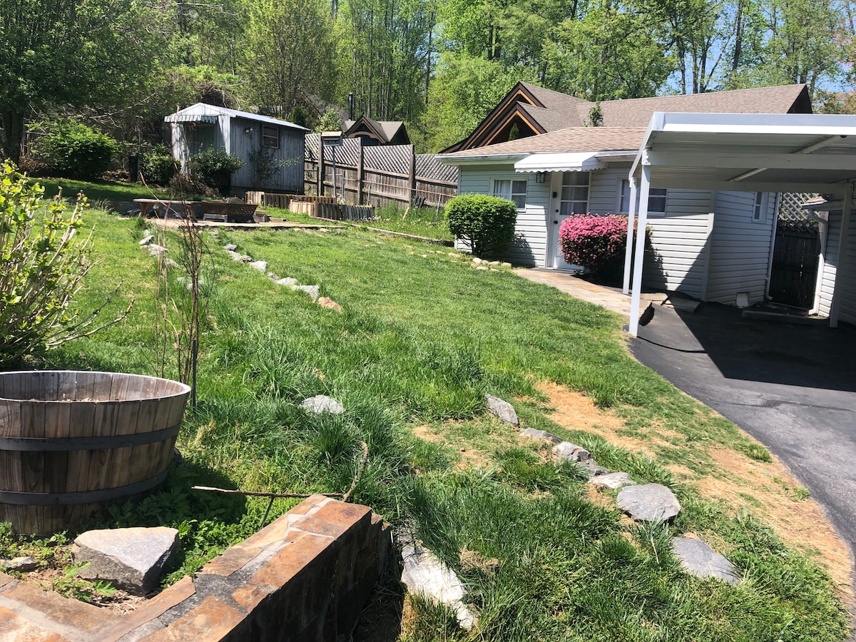 Welcome to Scout's Den! A cozy retreat walkable to all of Black Mountain's amazing restaurants and shopping. This adorable garden studio is separate from the main house and has a carport with space for one vehicle. This is truly an escape! With no internet we encourage our guests to enjoy the natural beauty of the mountains and our small town charm. We do have a TV with a Super Nintendo and DVD player if you feel like staying in. We live on the property full time with our family.