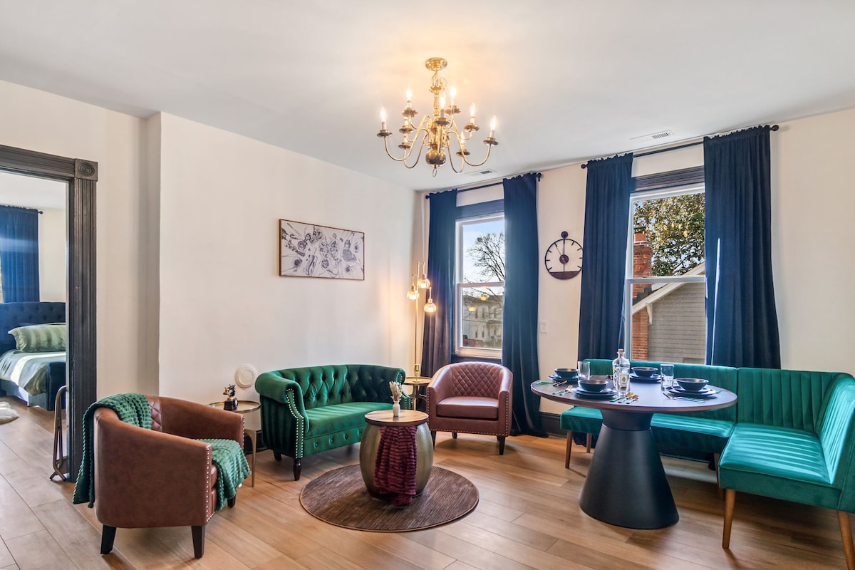 Welcome to Historic Meets Hip, a stylish 1-bed, 1-bath basement retreat near Battery Park, just 5 minutes from downtown Richmond with a private entrance. Important Before Booking: This suite includes a kitchenette for light meal prep (microwave, mini fridge, sink, coffee maker) but does not have a stove/oven. Guests selecting the non-refundable discounted rate receive a reduced price and acknowledge the reservation is final; travel insurance is strongly recommended when selecting this option.