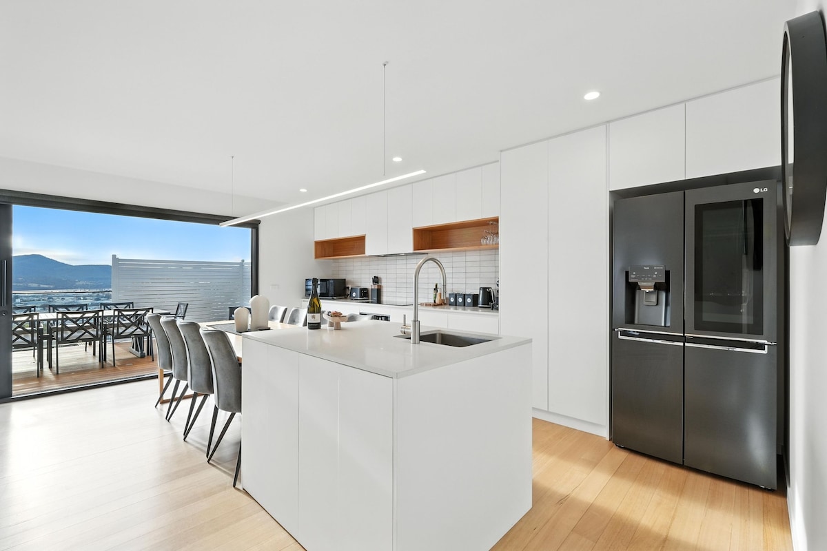 This 2 bedroom/2 story townhouse is equipped with a new kitchen and bathroom. It is only a 10-minute drive from the Hobart CBD and the Museum of Old and New Art (MONA). It is a short walk (5 minutes) from numerous cafes and restaurants and a Woolworths supermarket. Public transport is conveniently situated on the main road (also a 5-minute walk away). The kitchen is fully equipped with an electric oven, gas cooktop, and microwave. The bathroom is new and has a heated tiled floor.