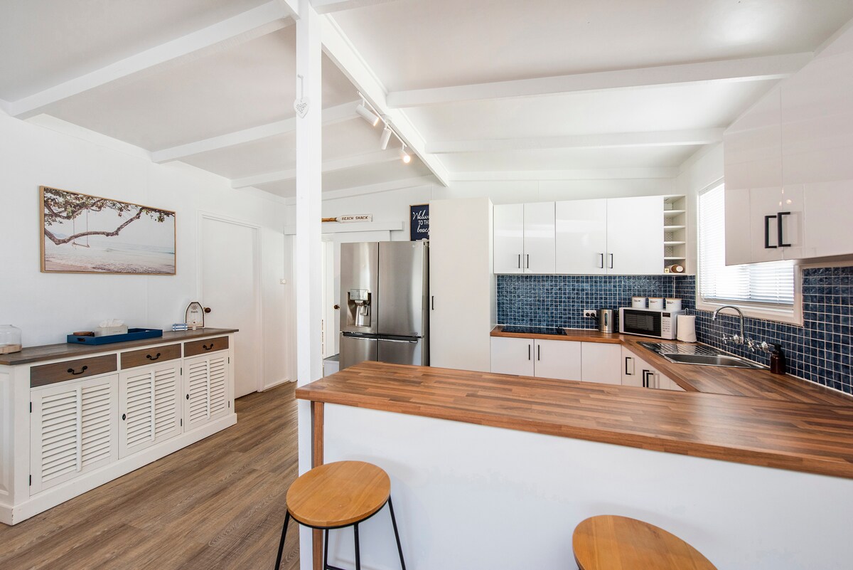 The Hula Shack is a relaxed and cosy holiday house with a subtle Hawaiian theme. Evoking the casual beach shack vibe of a bygone era. A compact modern kitchen and stylish contemporary bathroom provide a high level of guest comfort. Free unlimited wifi, 55" tv and comfy sofa. Hula shack is close to everything. Guests have exclusive use of the large garden with lawns and shady trees. Enjoy the hot/cold private outdoor shower amongst greenery. No pets at this property.