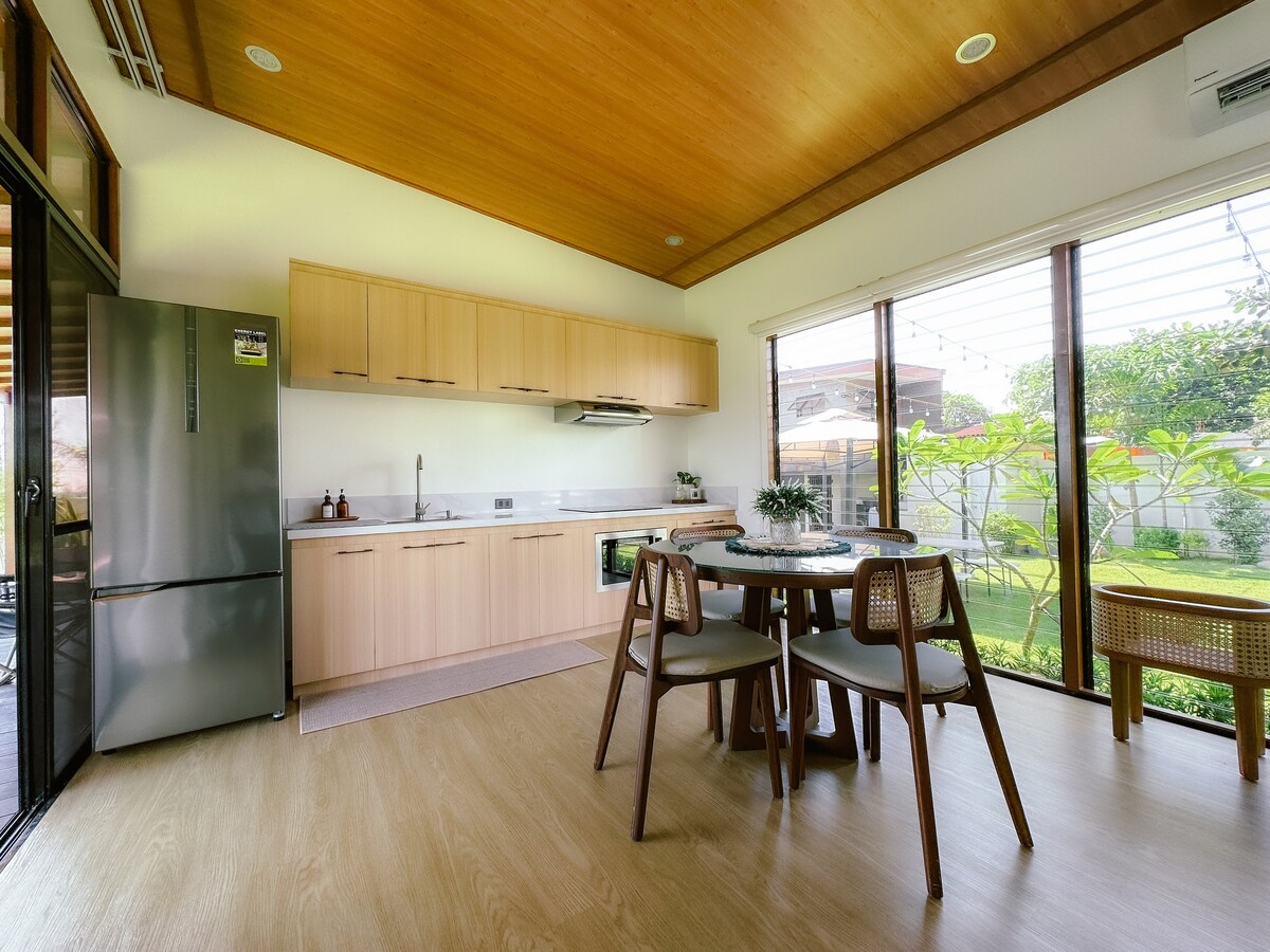 Welcome to your serene escape from the hectic city life. Only 45 minutes from Clark Airport, 15 minutes from the beaches and 5 minutes from Royal Duty Free, this cozy 30 square meter suite opens up to a patio with an outdoor bathtub, barbecue and dining area. NOTABLE FEATURES: >Comfy beds >Outdoor Tub >Hot shower >Backyard for Pets >WiFi >Grill >Outdoor dining >Hammock >Kitchenette >Gated village >24hr security >Air-Con >Pet friendly* >Extra fees after first 2 guests *w/ feed user ini it