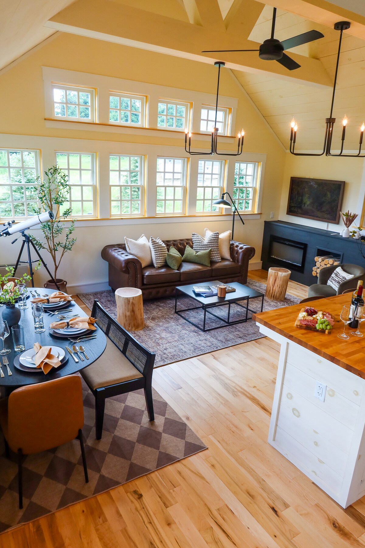 Badger Cottage offers a true rustic Vermont experience nestled in the woods with spectacular views and a quiet and peaceful ambiance. Once a barn, carefully reconstructed on the owners’ property, and modernized to today’s standards, this post and beam cabin is warm and cosy in winter and cool in summer. Well behaved dogs are very welcome and will enjoy the walks in the woods. Covid vaccinations are required. The owners live in an adjacent house with their very friendly Border Terrier