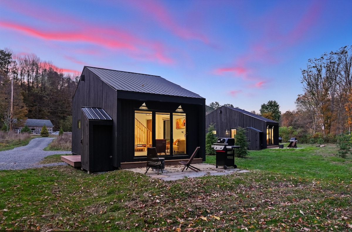 Enjoy a modern private cabin in the heart of Vermont's pastoral Upper Valley Region. Combining "Glamping" with the comforts of a permanent structure, the "HakuBox" (Haku means "to exhale") was designed to sit lightly on the land and offer a simple, restorative experience. Note: no shower, but swimming holes nearby! Queen bed, fire pit w/grill, free firewood, Adirondack chairs, picnic table, free coffee & tea, dog-friendly with cable trolley, food & water bowls. $39 pet fee applies.