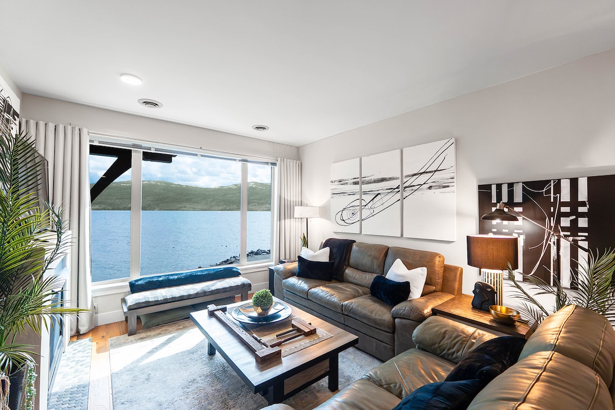 A luxurious one bedroom suite boasting unobstructed views of Okanagan Lake from EVERY room. Only a five minute drive from idyllic golf courses, world class wineries, and some of the best hiking trails in the province. You could be hiking Mount Boucherie in the morning and sitting on the patio at Mission Hill winery at sunset, walking along the lakeshore, or sitting on your own private deck listening to the iconic bell toll while watching the sun sink down into the glittering blue of the lake.