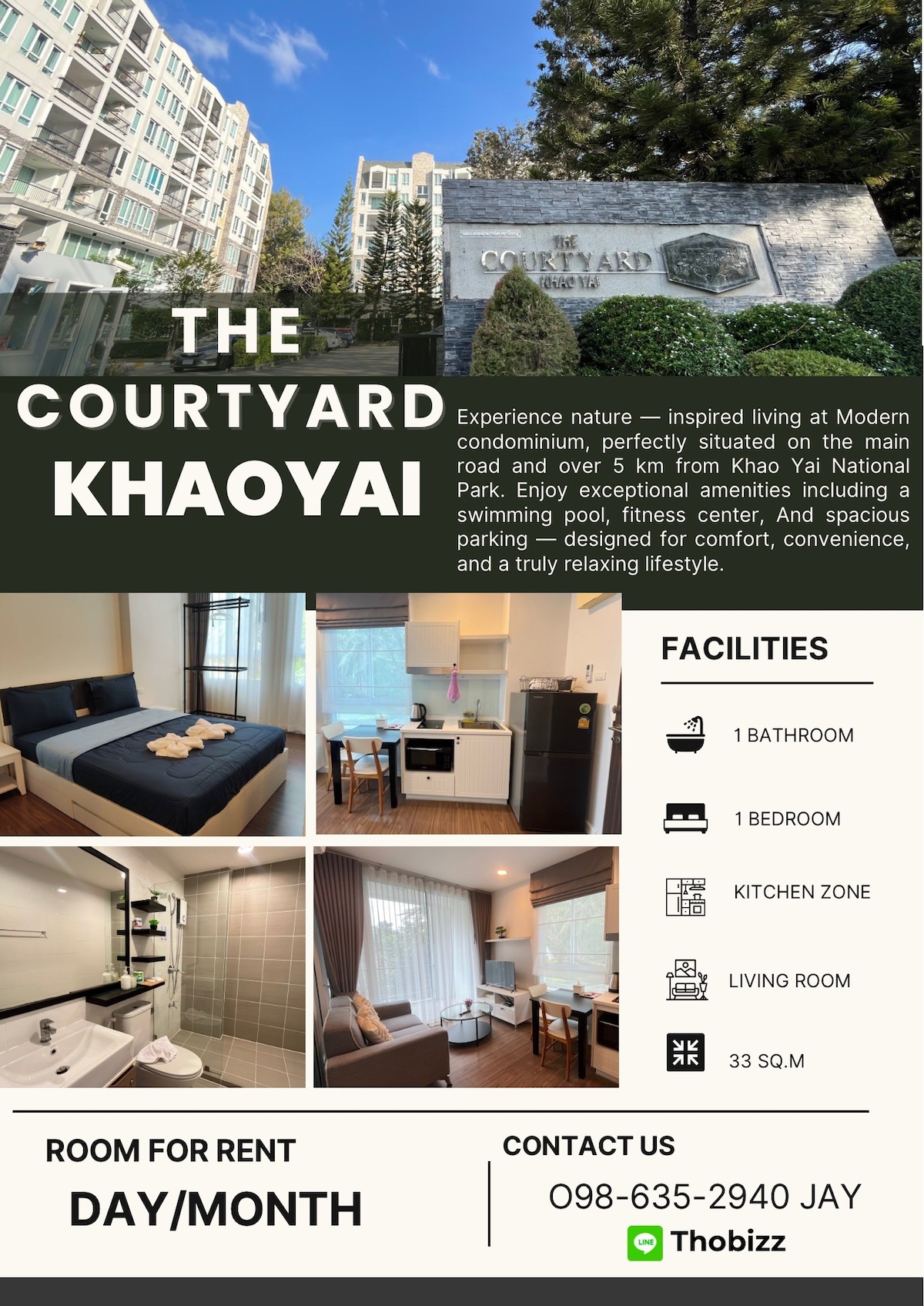 Just 2 hours drive from Bangkok and you will find a brand new condo located located on the most beautiful road to Khao Yai. The 97 sqm, fully furnished room is good for you and your family to spend time together. ขับรถจากกรุงเทพเพียงแค่ 2 ชม. ก็จะเจอคอนโดใหม่ที่ตั้งอยู่บนถนนที่สวยที่ร่มรื่นและสวยที่สุด ที่มุ่งสู่อุทยานแห่งชาติเขาใหญ่ ด้วยขนาดห้อง 97 ตรม. ตบแต่งเรียบร้อยเหมาะกับการใช้เวลากับครอบครัวในช่วงเสาร์อาทิตย์