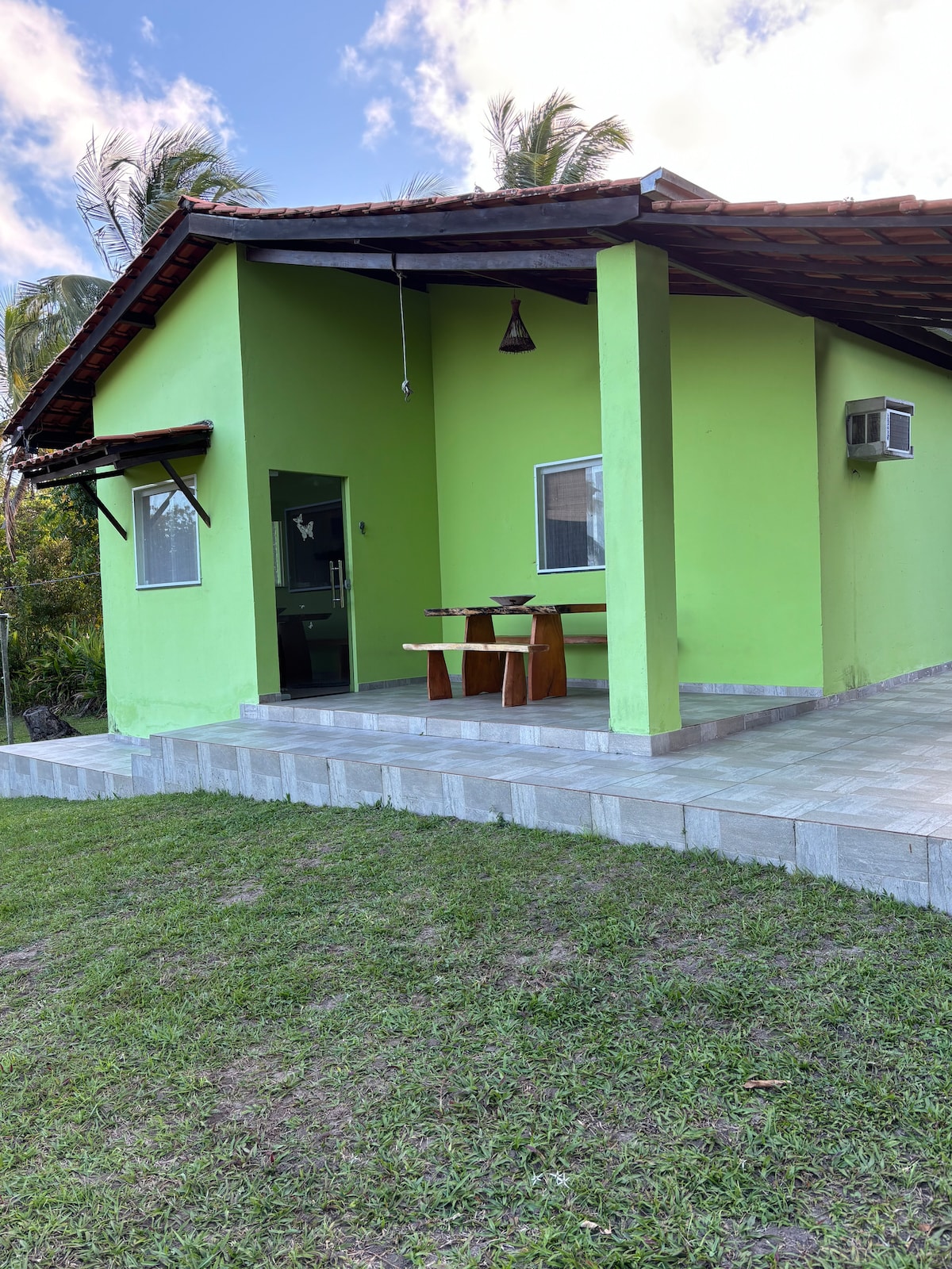 A small cozy rustic house, with a pleasant ventilated gourmet balcony, which allows no limits to your interaction with nature, providing the peace that you and your family seek outside the boundaries of the noisy and bustling metropolis. The house is located in the vast green field of the private Guaiamum Melado farm, close to the picturesque and pleasant historic city of Jaguaripe, the first village of Recôncavo, situated between the rivers Jaguaripe and Dona.