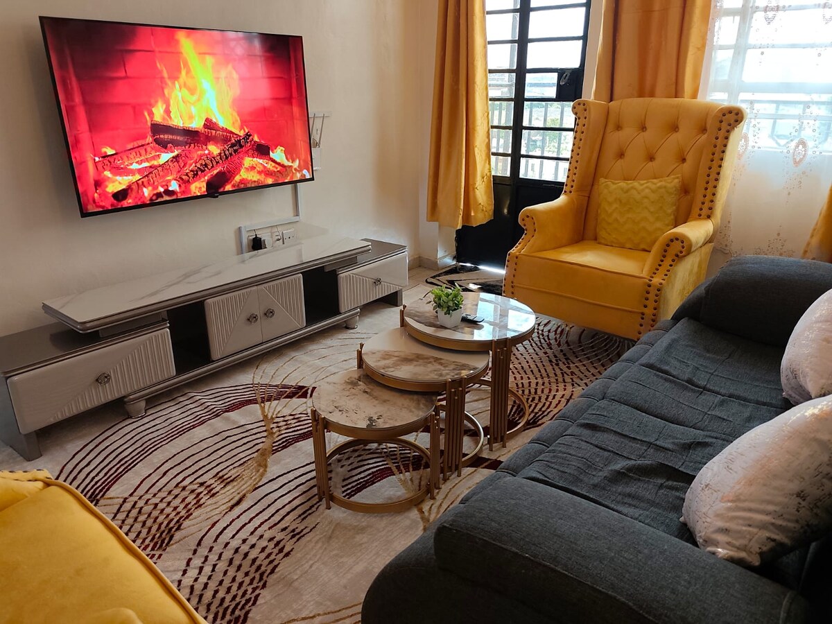 Welcome to our beautifully designed minimalist home nestled in a calm, peaceful location. A perfect space for you to unwind and rest after your days hustle, with great Wi-Fi! Enveloped in natural sunlight, the living area is great for basking and rejuvenating. The kitchen is well equipped, making meal preparation effortless and quick. Nights are quiet, you get some deep sleep, waking up to the song of birds, refreshed and ready for a new day. It is 1km from Muranga CBD.
