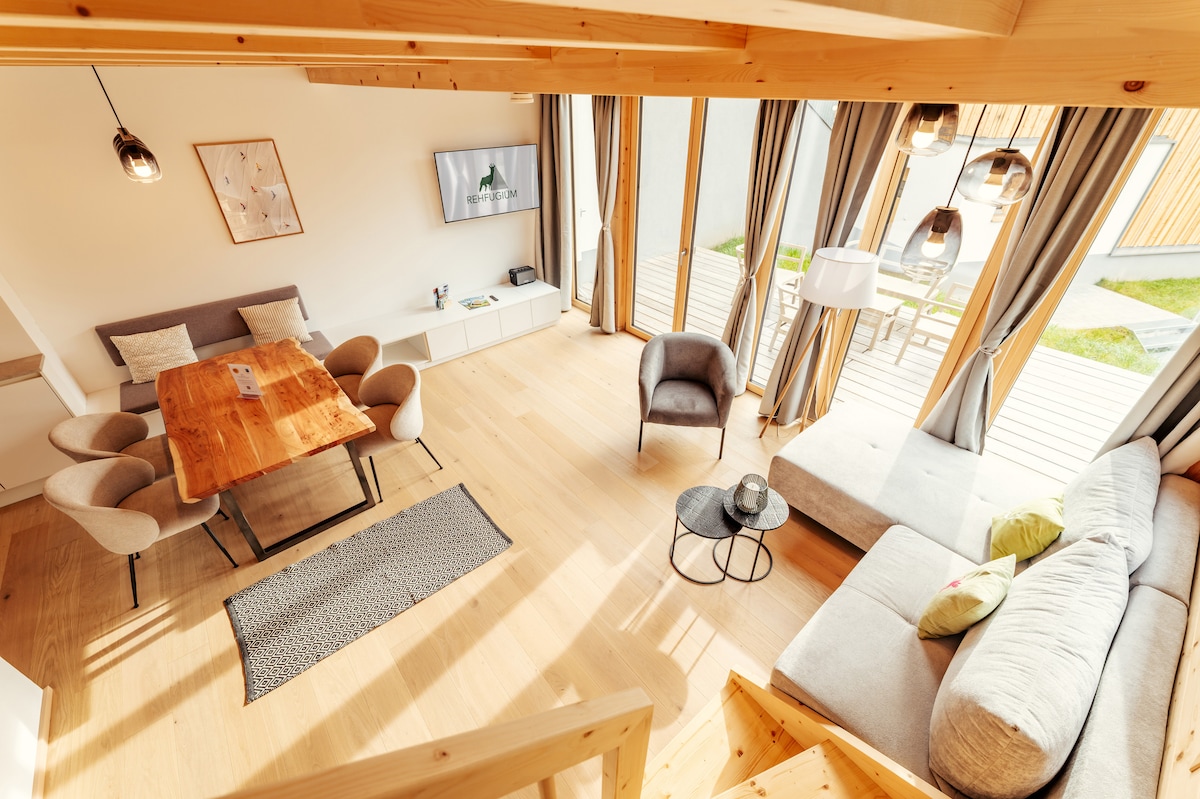 Enjoy alpine comfort with unique views and direct access to mountain and ski adventures. Highlights ✨ At approx. 1,600 m above sea level – stunning location with spectacular mountain scenery ✨ Impressive panoramic views ✨ Private sauna in every chalet ✨ Nestled in the idyllic Wölzer Tauern ✨ Only a few hundred meters from the 6-seater chairlift ✨ Toboggan run directly behind the resort for winter fun