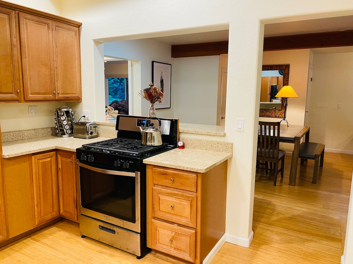 Gazing out the windows of this new house gives a feeling of being perched in a tree, with views of the surrounding greenery. Enjoy an evening on the oversized covered porch after a day of hiking in the ancient redwood forest. 2 bedrooms with hotel quality bedding will ensure a good night sleep, a full modern kitchen will inspire breakfast creations. Quick and easy check out instructions IG@pepperwood_place