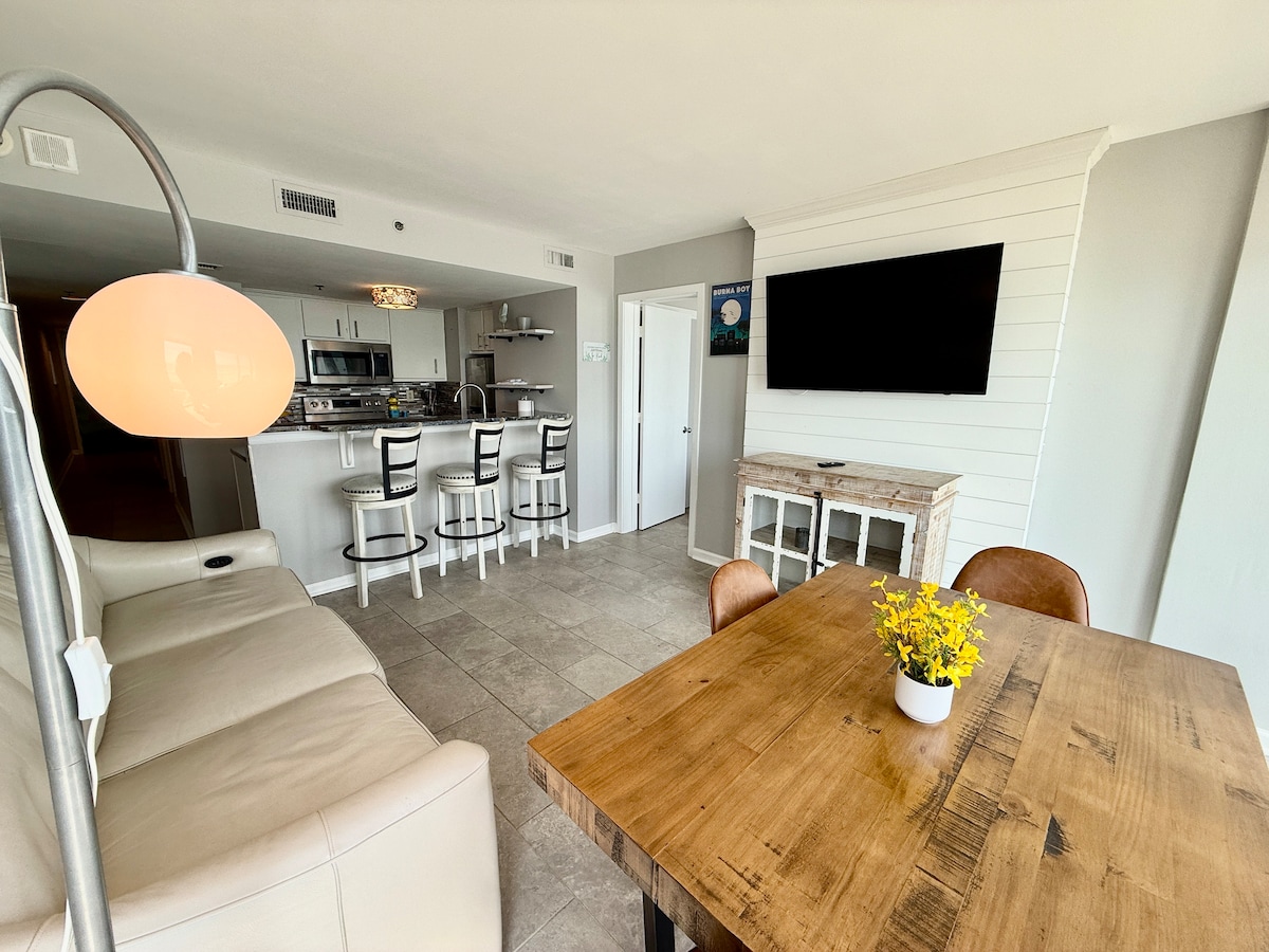 ༄THE BEST location: mere steps to the beach, walkable to the boardwalk, minutes to shops, restaurants + attractions ☼In a highly-regarded resort that's been voted Top Resort for 2 years in a row 𓇼Water attractions: Pools, Hot tubs, Lazy River, Kid's pool with pirate ship + Slides ☼Outdoor Shuffleboard, Cornhole, Giant Checkers + sun loungers 𓇼Equipped kitchen w/blender, coffee & waffle maker ༄ Board games, pack n play, high chair, Beach chairs & toys ☼Walk to Starbucks 𓇼Smart TVs ༄King Bed