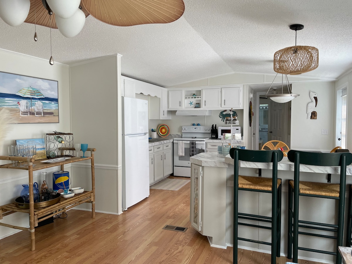 We've created a cozy, beach-themed getaway nestled in an adorable neighborhood, just a short drive to the ocean. We redid the entire home with all new appliances, flooring, and amenities. It's decorated to help each and every guest feel at home at the beach. The home is within 5 minutes of Sunset Beach. 10 minutes to North Myrtle, Cherry Grove. Both Wilmington and Myrtle Beach are within 40 minutes. There are plenty of restaurants, grocery stores, and bars very near the home as well.