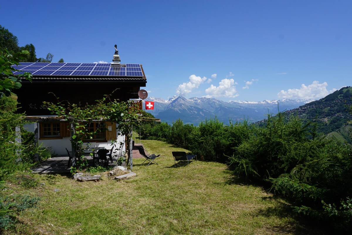 This small, private Swiss chalet is cozy comfortable retreat for one or two persons. The balcony offers a magnificent view of the Rhone Valley and Swiss Alps of Valais. Ideal for nature-lovers or those who simply want to just get away to relax and breathe in the Swiss mountain air. The chalet acts a point of depart for mountain walks or hikes, bike riding, snowshoeing or even cross country skiing in the winter time. Ski slopes and thermal baths can be reached in around 30 minutes by car.