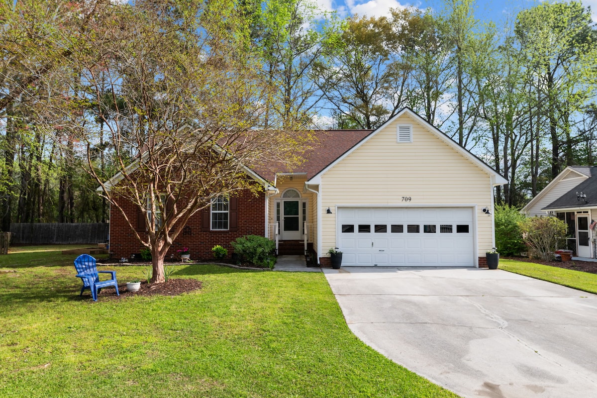 Adorable 1953 renovated cottage located in the heart of New Bern. Walk to grocery store. 1.4 miles to Twin Rivers Mall and Wal Mart. Two miles to historic downtown and half mile to Craven Regional Medical Center. Restaurants nearby. Walkable neighborhood. The living space has new smart TV, WiFi. and is newly furnished. The house has two bedrooms, two twins and one queen with new bedding and new mattresses. Bathroom tub with shower and washer and dryer. Kitchen with granite counters and island. Kitchen seats four with eat in table. Keurig one cup coffee, breakfast snacks, coffee, bottled water complimentary. All new appliances. Everything you should need for comfortable stay provided. Fenced back yard with deck Driveway parking for two vehicles. Check in is at 3:00. Check out 11:00 am.