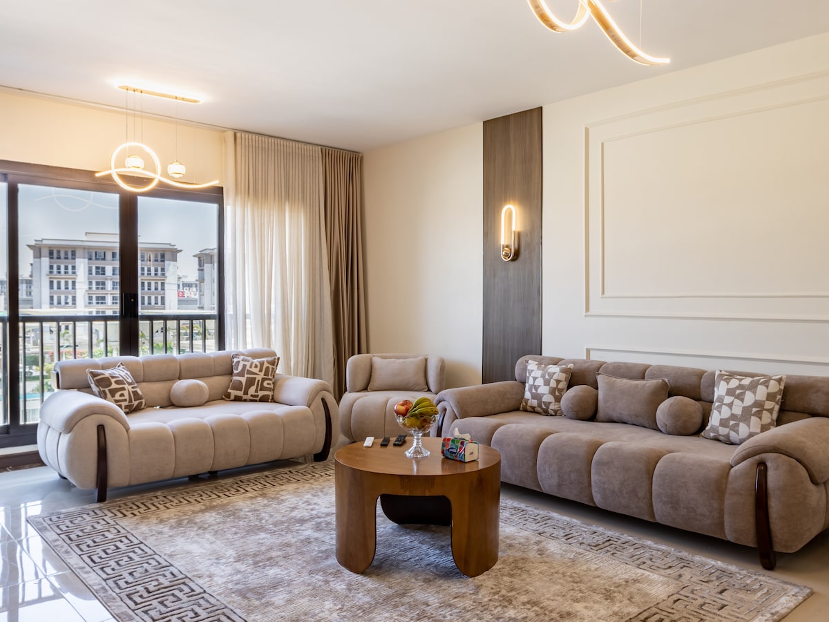 Welcome to your dream penthouse in the heart of New Cairo. This 3BR gem offers panoramic rooftop views, a private firepit/grill lounge, chic interiors, and ultra-comfy beds. Steps from AUC, Point 90 & Downtown Mall, you’re surrounded by cafes, restaurants, and everything you need. Whether you're here to relax, work, or explore — this spot delivers a rare blend of luxury, privacy, and location.