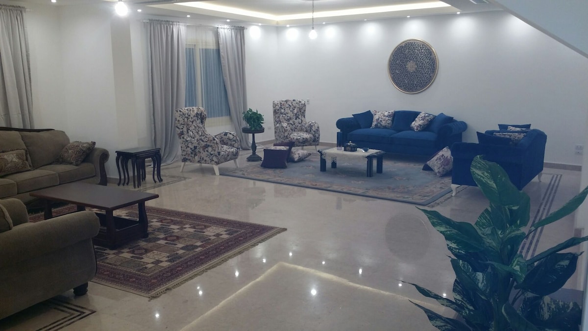 My lovely home is about 330 m . which located in the most nice place in New Cairo City in Egypt . every thing is very near to the Duplex which has two floor and has 3 A/C . 3 bathrooms 3 bedrooms . Our cool and comfortable Duplex has a true city feeling ! it comfortably fits 5 and is centrally located on a quiet street , it has 3 private bathroom , television , air condition , we can offer a new car from the airport to the Duplex with extra charge ! You will enjoy with us