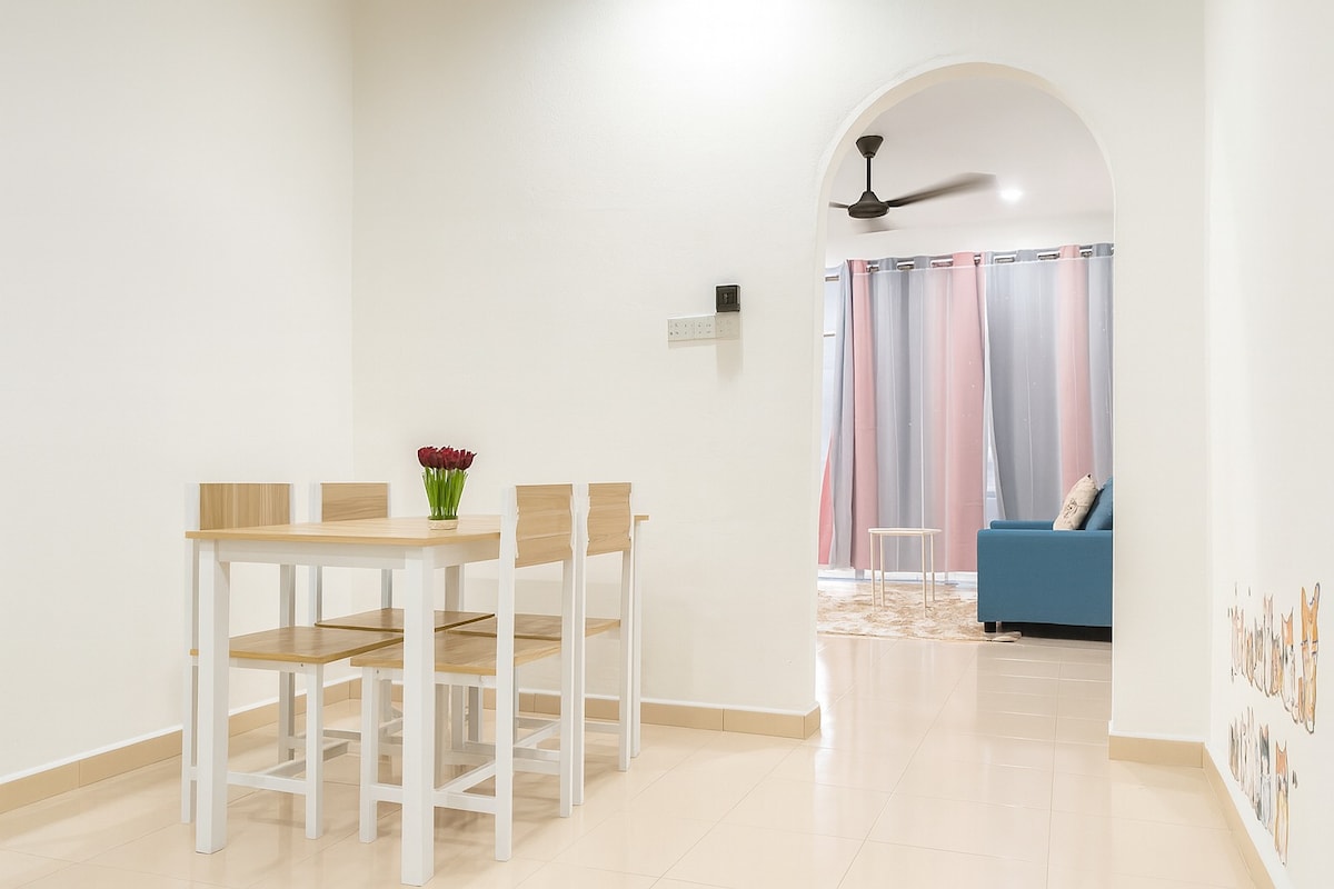 Welcome to ‘Little Sanctuary’, a cozy three-bedroom home in Jawi, Penang, perfect for families or friends. Our space comfortably sleeps six with two double beds and two single beds. Enjoy the simplicity and comfort of our living space, designed for relaxation and quality time. Make ‘Little Sanctuary’ your starting point for exploring the local culture and natural beauty of Penang.