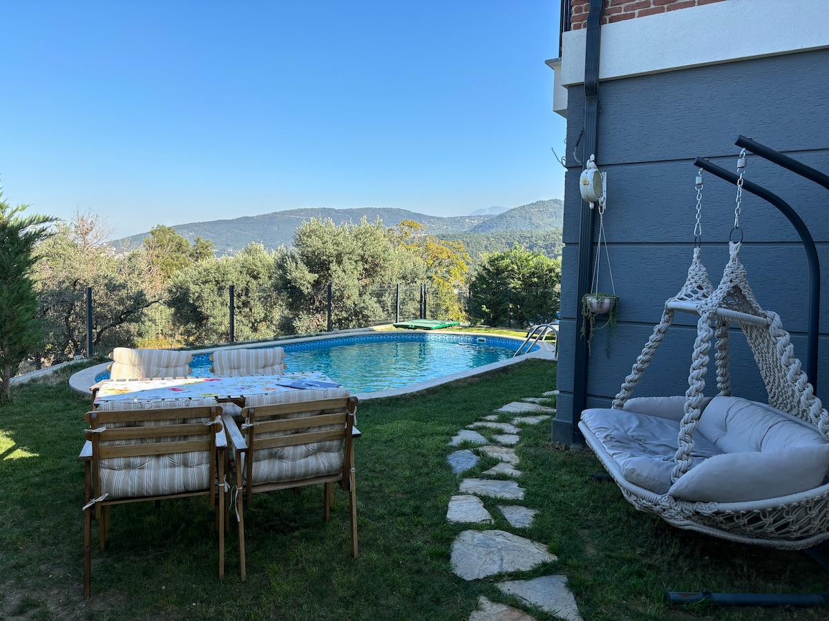 In the prestigious location of Gümüştepe, our luxurious villa with mountain and city views offers you peace and comfort. With a private pool, BBQ area, elegant interior design, and top-quality materials, it promises an unforgettable vacation experience. While enjoying the serene nature, you’ll also benefit from easy access to the city center. Contact us for more information and reservations!