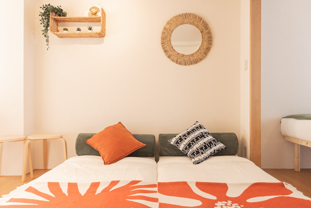 Located next to Tezukayama 4-chome Station . Easy access to Tennoji (15 minutes) and Namba (20 minutes), and a 5-minute walk from Tezukayama Station. Enjoy a relaxing stay. Maximum Occupancy: 4 guests Bedding: Two single beds and two futons Have washing machine with detergent(share) The Sumiyoshi Taisha Shrine and Sakai, known for its cutlery, are easily accessible. No Cooking No elevator Short-term and long-term stays available Special Experience: Enjoy meeting locals at the bar next door.