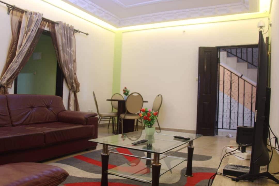 This peaceful accommodation offers a relaxing stay for the whole family. You will stay in a central area close to the road, while being away from the noise and nuisance of the city. With its cozy living room, two bedrooms, two bathrooms, equipped kitchen, FREE WIFI, 24/7 security and free internal parking, you are assured of a quiet stay. Enjoy the comfort and don't be afraid of power cuts thanks to the powerful GENERATOR. Prepaid electricity meter