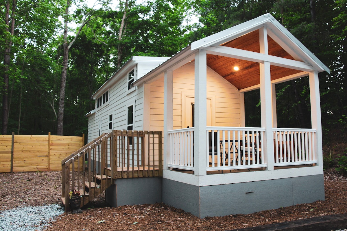 This is the perfect ROMANTIC ESCAPE! Located in the Sumter National Forest the Bella Luna is just 5 minutes from Stumphouse Tunnel, Issaqueena Falls, Yellow Branch Falls hiking trail, and Stumphouse Mountain Bike Park and within an hour of Clemson, Lake Jocassee and Clayton, GA. Our romantic retreat features carefully curated vintage furnishings, an outdoor shower, napping net, relaxing seating areas and an outdoor fire pit stocked with firewood and a Sβmores kit! We can't wait to host you!