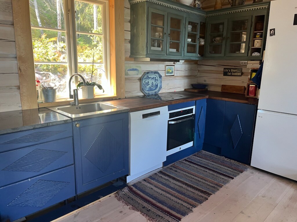 Newly-built cottage of 30 sqm. 5 minutes' walk from the harbor. - Open-plan with kitchen and living room in one. - Sleeping loft with 2 single beds. - The living room has a sofa bed. - The kitchen has an induction stove and oven. - Fully tiled bathroom with toilet, shower and washing machine. - Large terrace around the house with dining area. - The view consists of pine and blueberry forest - Cleaning is not included. - Pets are not allowed - Guests bring their own bed linens and towels (can be rented for SEK 150 per person)