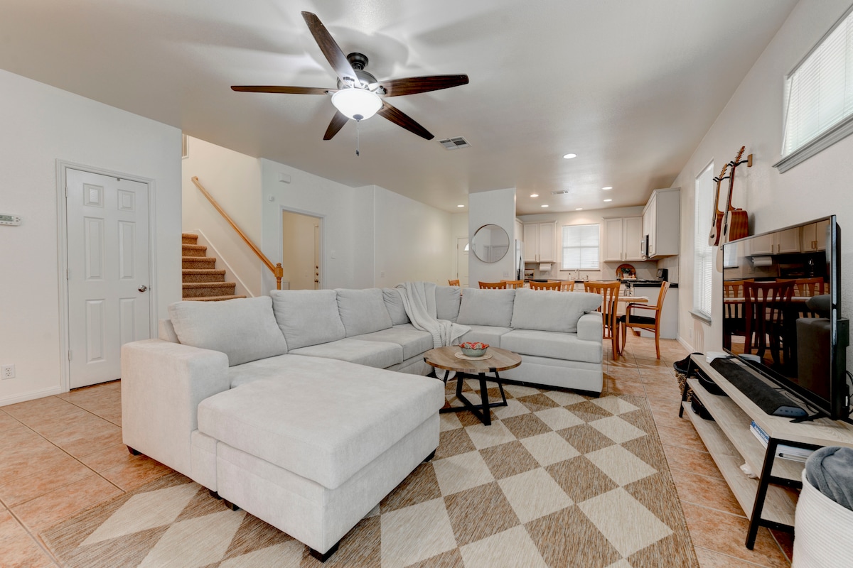 This is a small modern 2bed/2.5 bath home (900 sq ft) that can sleep 4. You will have your own driveway and private backyard with a small deck! This place is perfect for small families, couples, solo adventures and business travelers. It has two bedrooms upstairs and a sleeper sofa downstairs. It is conveniently located near Downtown, Domain, Mueller and other major attractions. Easy access to major highways, restaurants, grocery store, and public transportation (Crestview Rail Station).