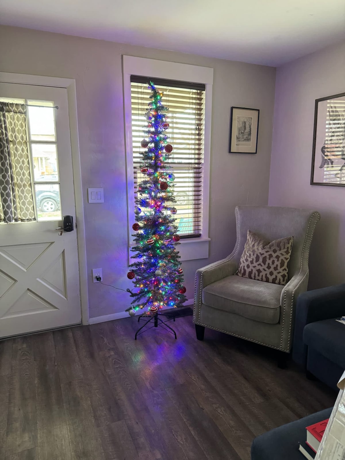 Treehouse Sanctuary is a hand-built guest space near downtown Boise. This light-filled 480 square ft upstairs studio boasts Idaho art, heated wood floors, farmhouse sink, gas stove, antique desk, firm but soft queen bed, record player, Bluetooth speakers, comfy reclining chair, clawfoot tub, and WiFi. No TV! Free on-street parking. Raised deck overlooks garden. Hot tub. Stairs to access. No pets. Owner lives in separate main home. LGBTQ welcome! Space resonates with peaceful, healing energy.
