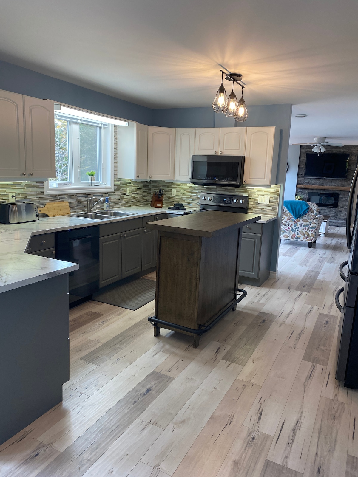 Enjoy this beautiful modern open concept home, nestled between the mountains and ocean in picturesque Rattling Brook. An ocean view from every window. Minutes from all amenities for example, restaurants, liquor store, grocery store, gift shops, community boat launch, 3 beautiful hiking trails with varying degrees of difficulty. Pet friendly with deposit. 2 bedrooms, one king, one queen with tv/wifi . 2 bathrooms. Full kitchen. Washer/dryer. Barbecue .2 decks.
