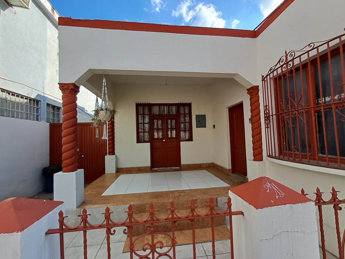 Traditional housing in Cd. Victoria, Colonial style. Large main room, 1 double bed, 1 single bed and 1 sofa bed. A/C, TV, izzi, internet. iron. Clothes rack, hair dryer, dressing table, 2 desks Large bathroom (new) Kitchenette, has the basics, bar for 2, kitchen utensils. Fridge bar (new), porcelain bar DO NOT SMOKE INSIDE THE HOUSE FREE PRIVATE PARKING No cleaning fee is charged No parties or events are allowed inside the house.