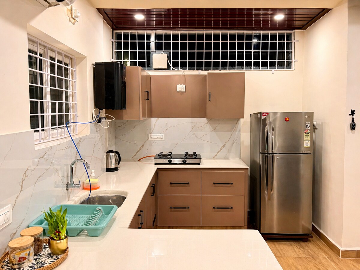 Modern 2 BHK apartment in the heart of city Spacious, stylish and fully furnished - perfect for families, couples, groups or business stays. Enjoy cozy bedrooms, a well equipped kitchen and hi-speed WiFi in a private space during your stay. The flat is located in the Gurunanak colony, Vijayawada which is prime area and is near to hospitals, restaurants, malls and transport.