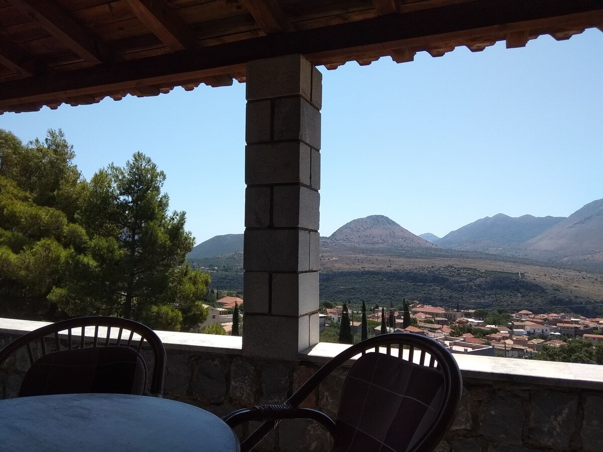 Stone house in Itilo, Laconia, a peaceful place for a relaxing time, where you can enjoy the view from the verandas. There is a private parking space only few feet away from the front door. It is a 5-minute drive from the nearest beach.