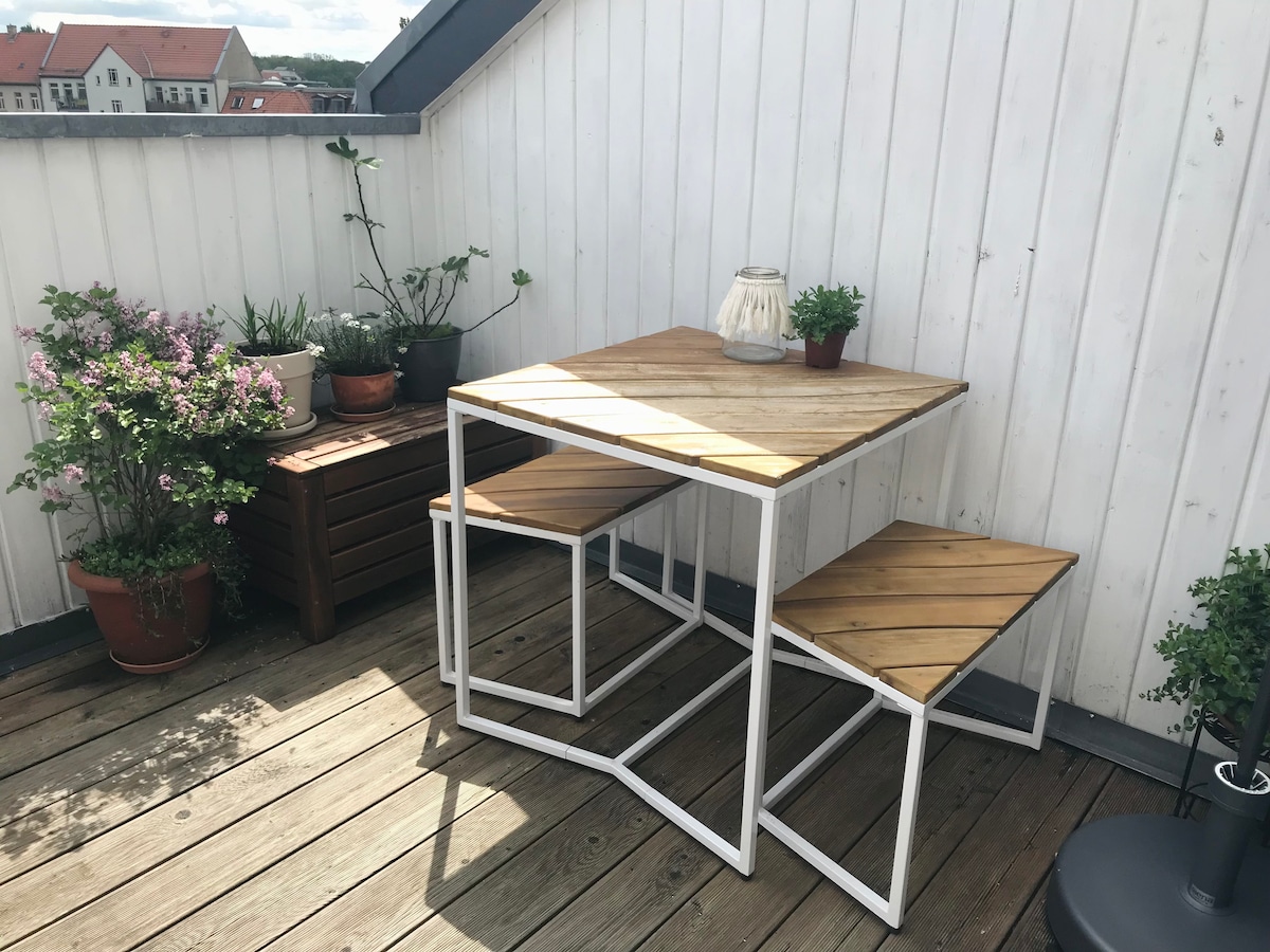 With this apartment you have the best connections in all directions - within 10 minutes you can be in the center or at the genocide monument. The apartment has a view over all the rooftops of Leipzig and you can actually see all the landmarks of the city from above! The roof terrace invites you to sunbathe and drink iced coffee on the outdoor bed and the sunset is perfectly placed from there. The apartment is also located exactly between two beautiful parks.