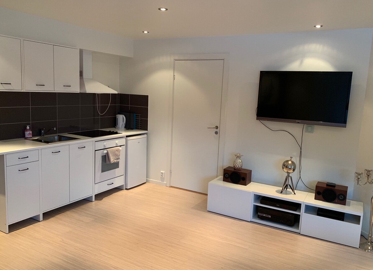 Modern and cozy apartment on the first floor. Living room and kitchen with cooking facilities and fridge. Tiled bathroom with washer and dryer. Spacious bedroom with large double bed (200x180) Good parking spaces right by the house. Access to garden with outdoor furniture. Great view towards the center of Vinje and Lønahorget. Hiking trails and activity opportunities right outside the doorstep. Walking distance to grocery and gas station.