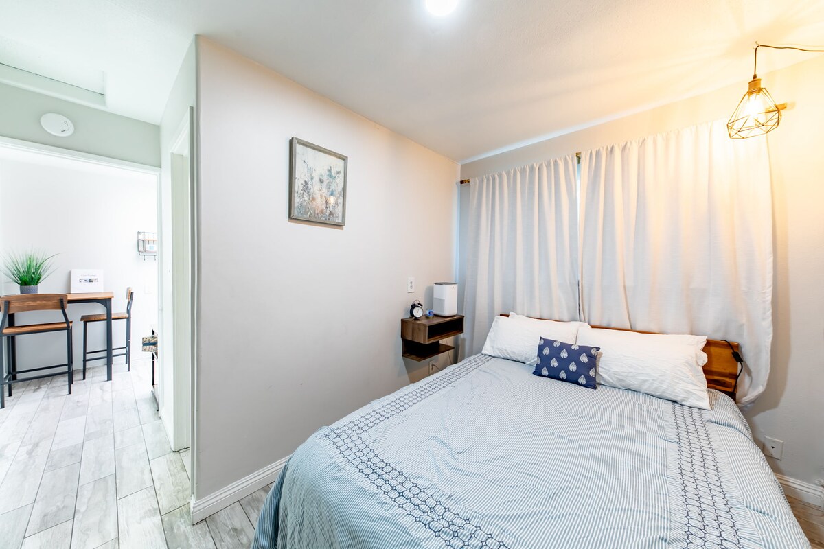 Slip into a quiet, private stay that feels tucked away yet close to everything. This cozy space is designed for rest, simplicity, and easy evenings after a full day out. - Queen bed with Nectar mattress - Wifi and 75” Smart 4K TV - Full Bathroom, Kitchenette and Dining - Central heating & cooling (shared system) - EV charger (220V) available on request - Located near the 405 and 55 freeways - 20 minutes to Disneyland - 10 minutes to the beach and shops Feels easy to arrive—and easy to stay!