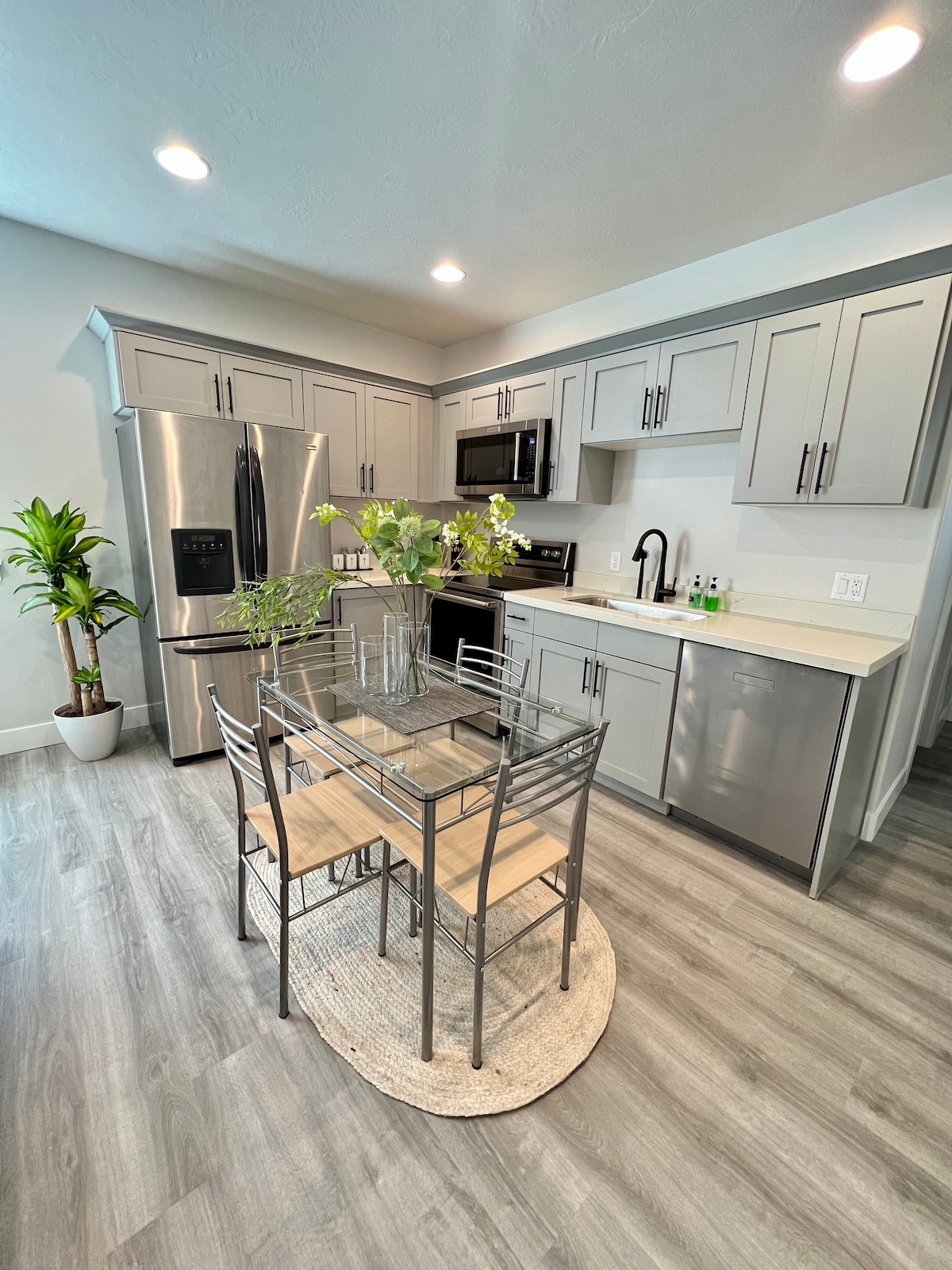 This beautiful apartment, nestled up on the bench in Utah County awaits your visit! The area has so much to offer its visitors. If you love the outdoors, you will find something amazing to do throughout the year. We are close to both BYU & UVU campuses. The neighborhood is quiet, safe and close to grocery stores and restaurants. Free parking. Just across the street is a paved walking/running/biking trail. The kitchen is equipped with everything you will need to prepare meals during your stay.