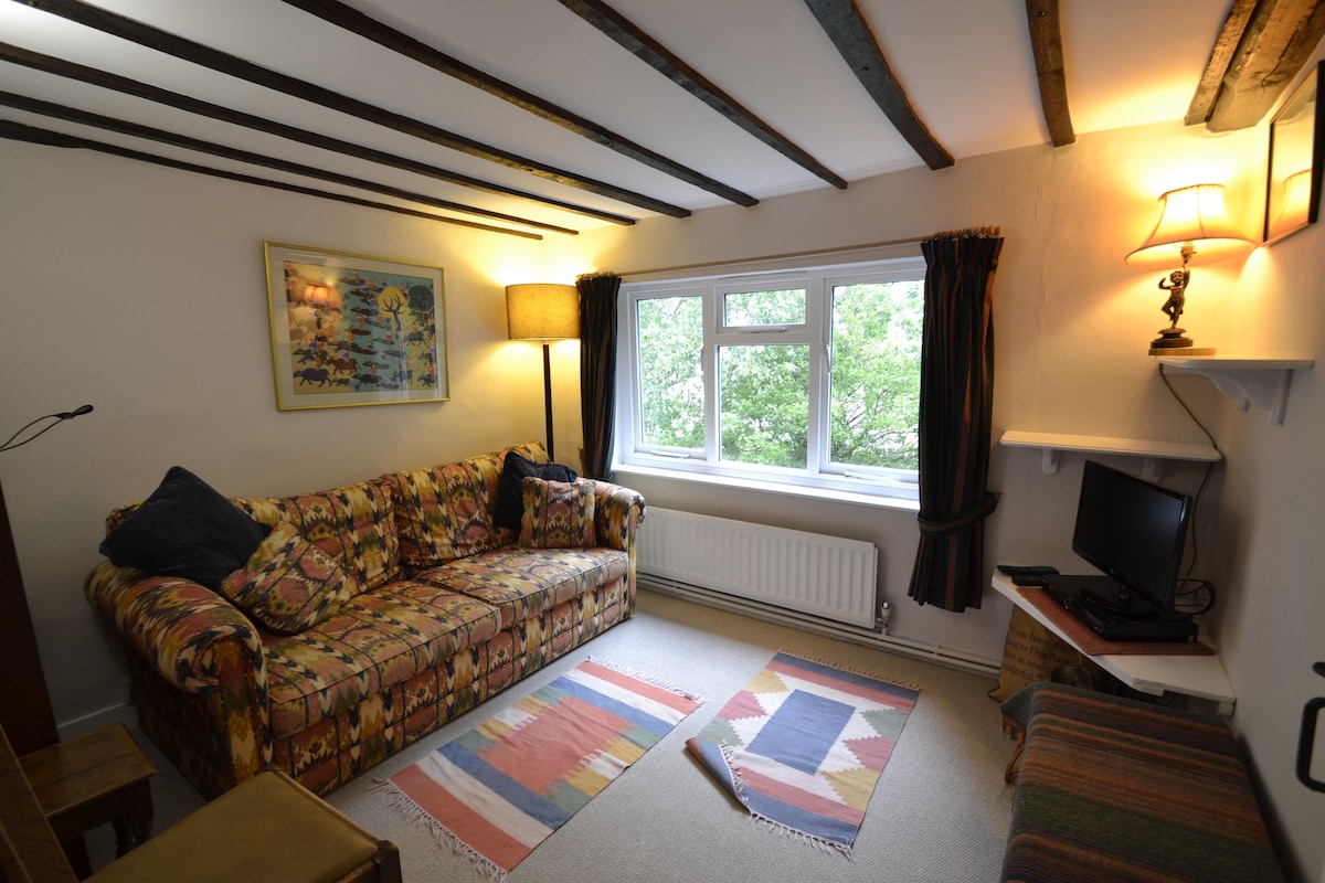 Highly suitable for long-term stays, this charming cottage includes quirky, cosy, individual decor, complete with Aga and vintage kitchen for those who like a classic cottage style, yet with the comfort of all mod cons. Quiet area just a few minutes walk from the local amenities of cafe, supermarket, post office, library, large open recreation ground and play area with extensive woodland walking. Off-road parking, lovely enclosed rear cottage garden and endless woodland walking on the doorstep.