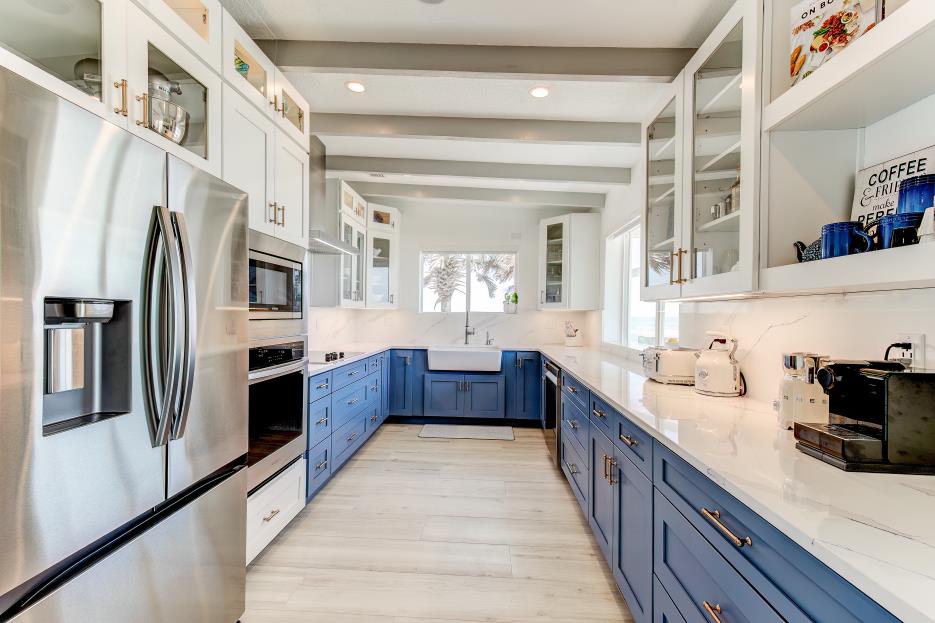 *MODERN*OPEN*HEATED SALTWATER POOL*CLOSE TO BEACH*FENCED IN YARD*DOG Located in Palm Harbor area, Close to beach,shopping, and Restaurants. We welcome you to our new home in Palm Coast. EVERYTHING is new and of higher quality. We have furnished and stocked this home as it were a year round primary home. This kitchen has beautiful cabinets, granite counters, new stainless steel applinaces, tile floor thru-out, bamboo window treatments, stone showers, plenty of closet space