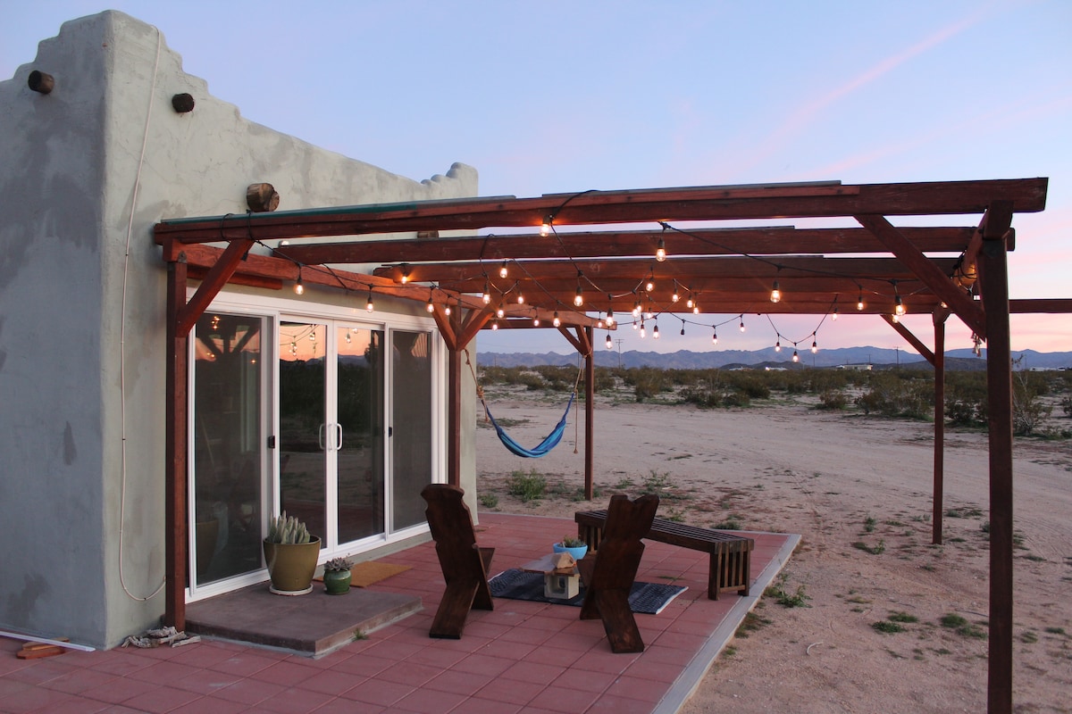 Just 8 minutes to the park entrance! The Resting Rabbit is located in the heart of Joshua Tree Village. Enjoy Roku smart TV, high speed WIFI, game room, fire pit, BBQ, & more. *Please note* The projector is currently unavailable due to a screen issue, but the TV is fully functional with all the same streaming options. 5 minute walk to the local & popular: Joshua Tree Coffee, Crossroads Cafe, Natural Sisters Cafe, Country Kitchen, local shops, Farmer's Market & Visitor's Center